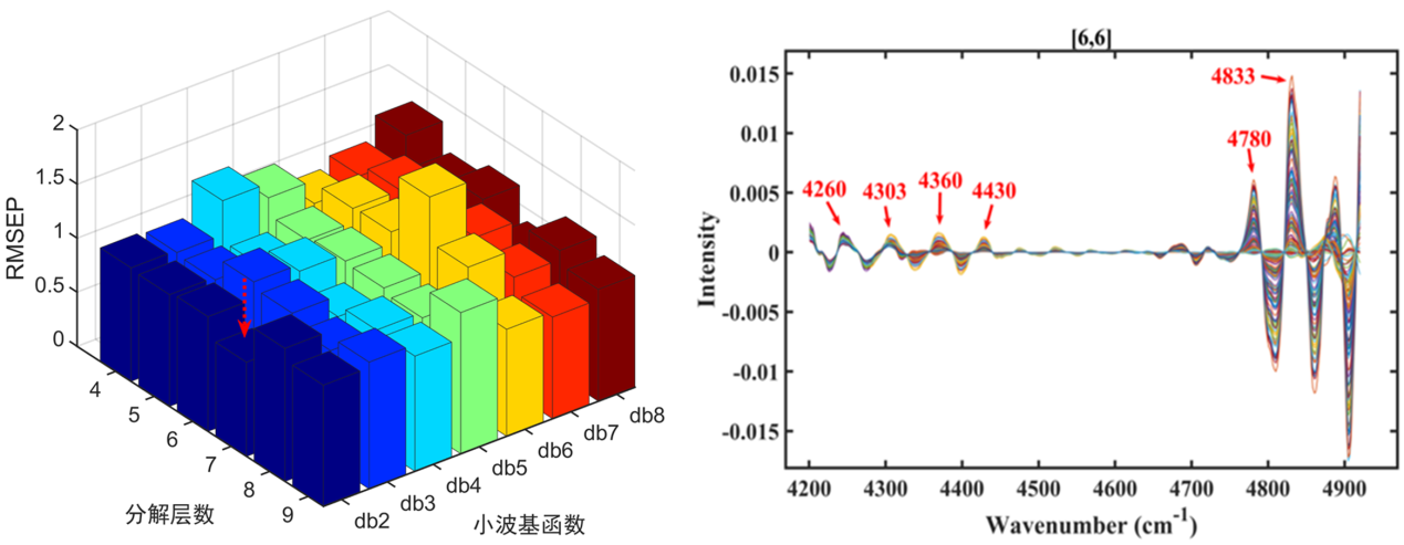 研究表明,WPT-FS 通過引入“模糊隸屬度”刻畫節點系數與噪聲的相似性,避免了傳統硬/軟閾值的過度壓縮與信息丟失;WOA 則高效篩選出與Hb高度相關的中低頻特征節點(如4260、4366、4600 cm-1等),實現對關鍵信號的強化與對殘余噪聲的抑制。該方法為全血近紅外定量提供了新的技術路徑,有望支持臨床場景下Hb的快速、準確檢測,并可推廣至其他生物標志物的光譜分析。
