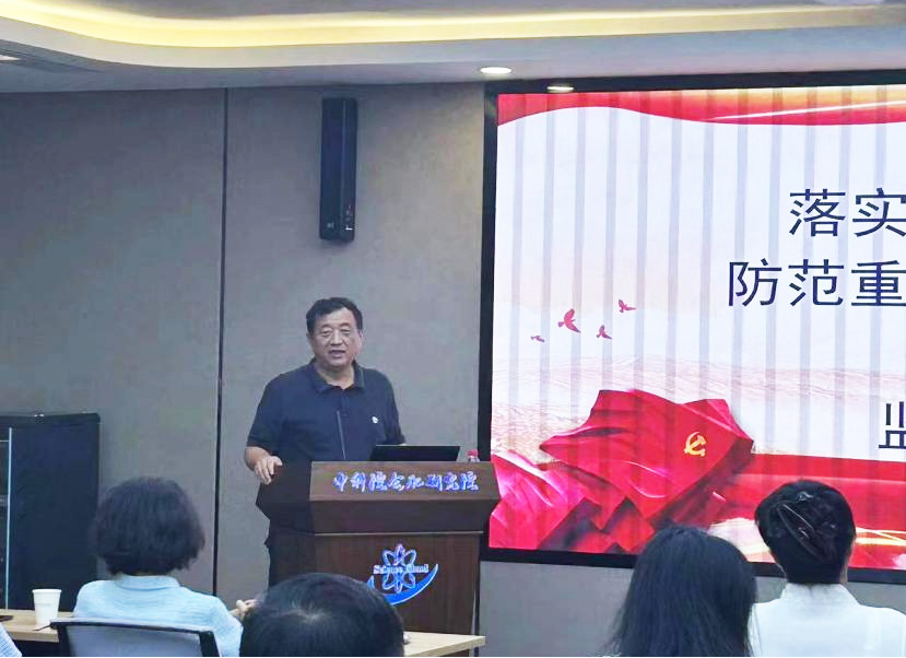 服務中心、科技館、計量中心、資產處、新聞小組負責人分別就各自分管工作的廉政風險點、風險內容、防控措施做詳細匯報。隨后,監督與審計處處長翁寧泉作《落實一崗雙責防范重點領域風險》的報告,詳解審計發現的重點問題,強調各部門要落實一崗雙責,防范重點領域風險。
