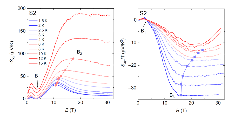 圖1. 弱拓撲絕緣體HfTe5強磁場下塞貝克效應和能斯特效應的測量結(jié)果