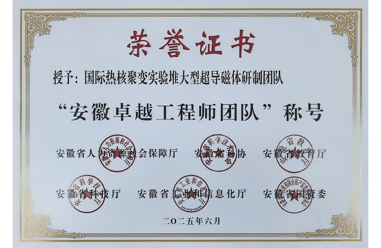 近日,首屆“安徽省工程師獎”評選結果公布,中國科學院合肥物質院唐佳麗榮獲“安徽卓越工程師”稱號,國際熱核聚變實驗堆大型超導磁體研制團隊榮獲 “安徽省卓越工程師團隊”稱號。該獎項由安徽省人力資源社會保障廳、省科協、省教育廳、省科技廳、省工業和信息化廳、省國資委等部門聯合評定,旨在實施人才興皖工程、建設卓越工程師隊伍。